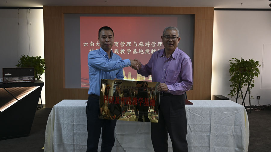 為深入推進(jìn)校企合作協(xié)議,云南大學(xué)商旅學(xué)院副院長姚建文為云南天度集團(tuán)授予了“云南大學(xué)科研及實踐教學(xué)基地”牌匾,雙方將以此為契機,共同譜寫校企合作的新篇章。