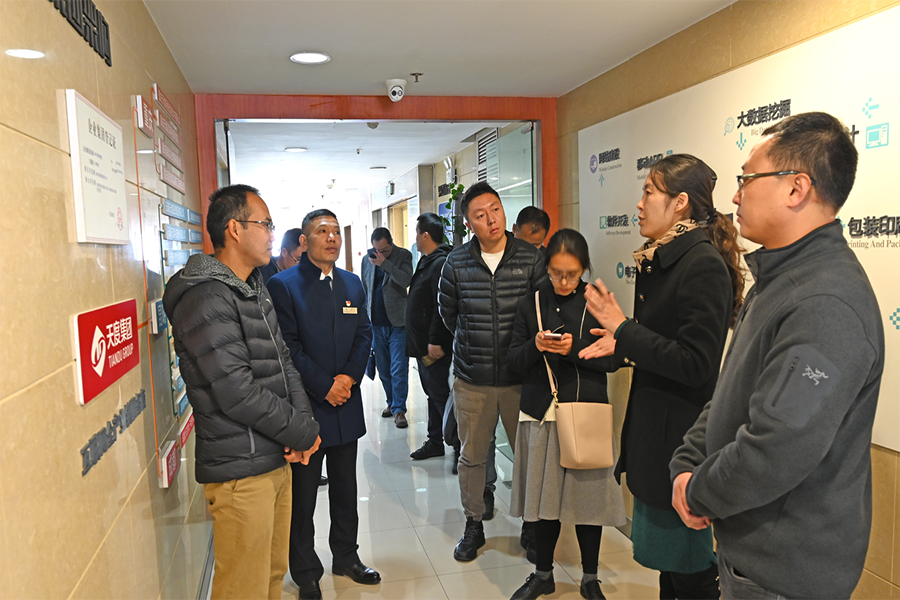 陳凈等一行領(lǐng)導(dǎo)主要調(diào)研了天度集團(tuán)在數(shù)字經(jīng)濟(jì)領(lǐng)域的發(fā)展建設(shè)情況,集團(tuán)相關(guān)負(fù)責(zé)人作了深入的講解和匯報(bào)交流工作。
