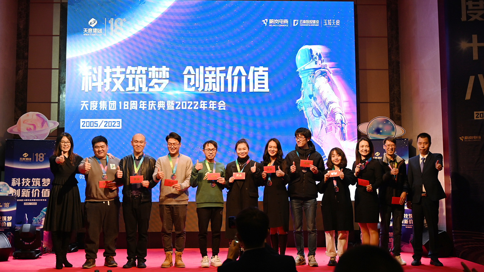 2023年1月8日,科技筑夢·創(chuàng)新價(jià)值—天度集團(tuán)18周年慶典暨2022年年會(huì)在西南賓館圓滿落幕,集團(tuán)及各公司同仁齊聚一堂,共慶天度集團(tuán)發(fā)展成果,共享年會(huì)歡樂時(shí)光!