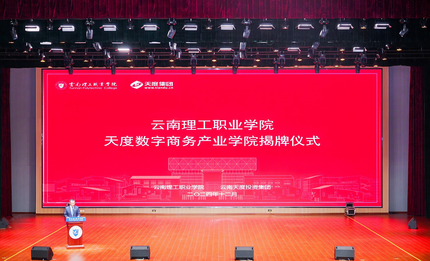 12月5日,云南理工職業(yè)學院天度數(shù)字商務(wù)產(chǎn)業(yè)學院簽約揭牌儀式在學生會堂隆重舉行。此次簽約標志著云南理工職業(yè)學院與云南天度投資集團強強聯(lián)手,共同開啟職業(yè)教育產(chǎn)教融合新篇章。