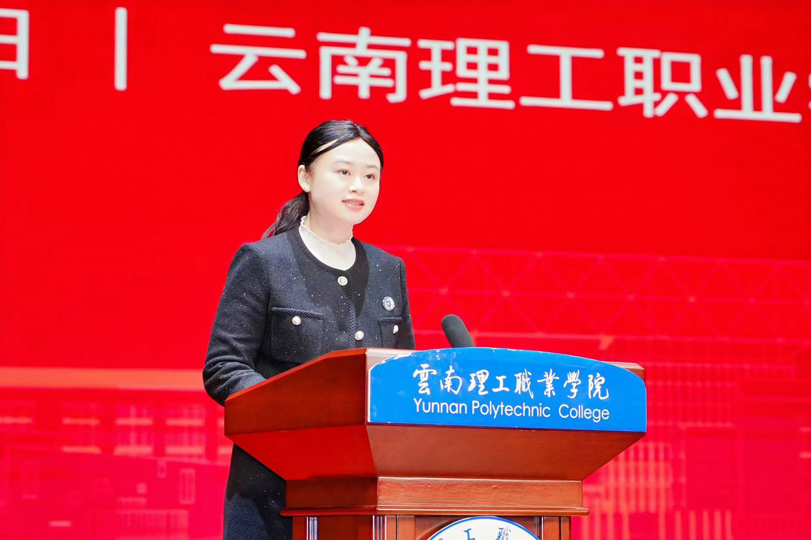 楊陽董事長作致辭,她代表學校董事會向出席揭牌儀式的領(lǐng)導、嘉賓表示熱烈歡迎,向辛勤努力的雙方團隊表示衷心感謝。她表示,學校與天度投資集團攜手并進、共同探索建立的天度數(shù)字商務(wù)產(chǎn)業(yè)學院是雙方優(yōu)勢互補、資源共享的典范,更是教育與產(chǎn)業(yè)深度融合、互利共贏的生動實踐。通過這一平臺,校企雙方將共同探索數(shù)字商務(wù)領(lǐng)域的前沿技術(shù)和創(chuàng)新模式,推動產(chǎn)學研用深度融合,為行業(yè)培養(yǎng)更多具有創(chuàng)新精神和實踐能力的高素質(zhì)人才。她相信,在雙方的共同努力下,天度數(shù)字商務(wù)產(chǎn)業(yè)學院將不負眾望,成為云南省乃至全國眾多產(chǎn)業(yè)學院中的一顆璀璨明珠,為培養(yǎng)更多優(yōu)秀的數(shù)字商務(wù)人才、助力云南省三年行動計劃和“3815”戰(zhàn)略、推動我國數(shù)字經(jīng)濟的繁榮發(fā)展貢獻力量。