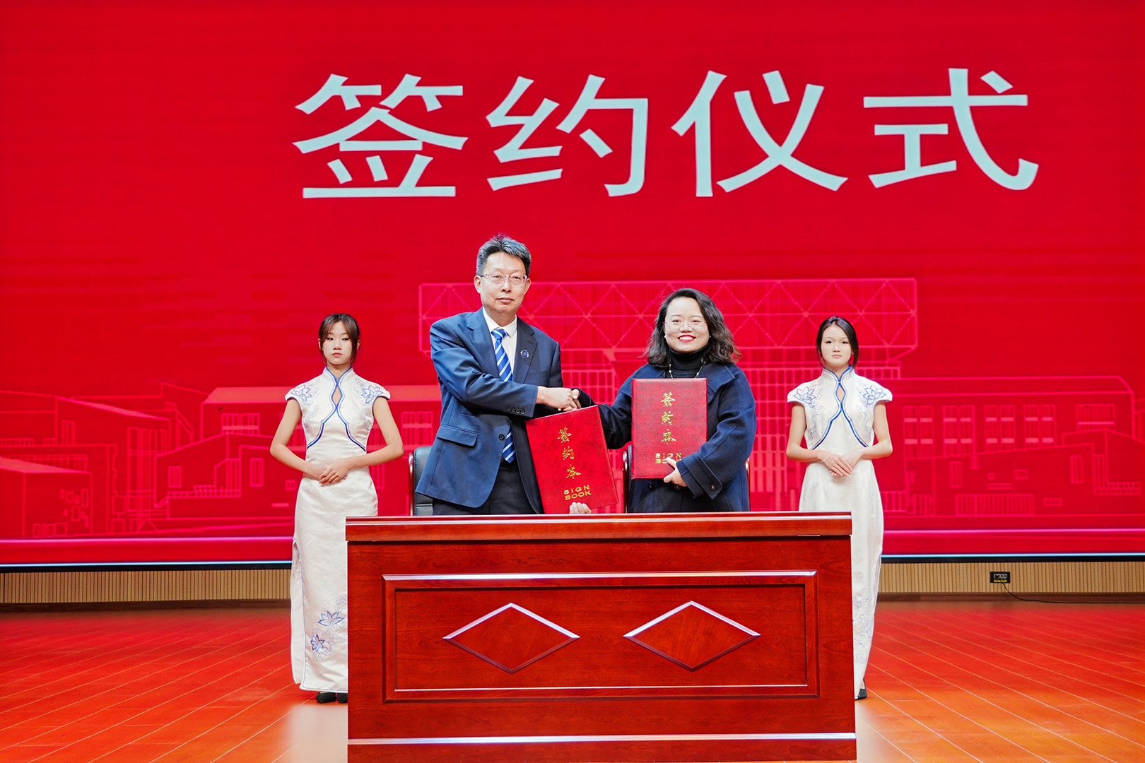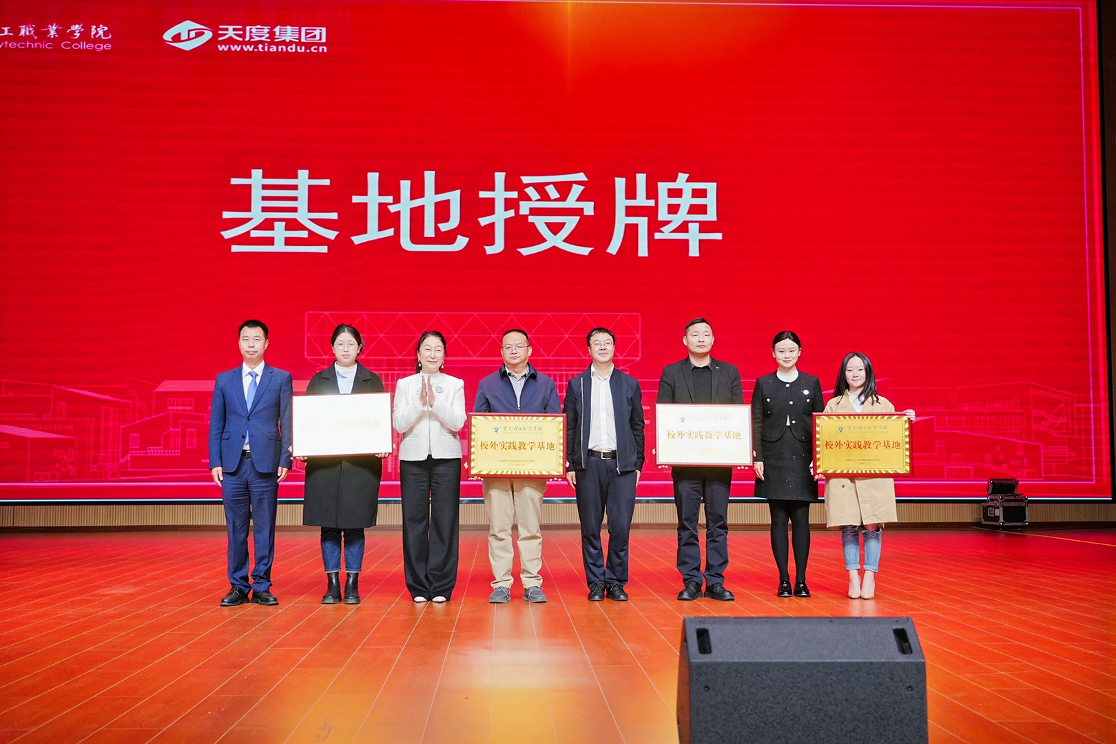在全體參會人員的見證下,劉相校長與胡婷婷總經(jīng)理分別代表校企雙方簽署合作辦學協(xié)議。楊紅衛(wèi)董事長與鄭桂文董事長共同為“天度數(shù)字商務(wù)產(chǎn)業(yè)學院”揭牌,正式開啟產(chǎn)教融合協(xié)同育人新征程。