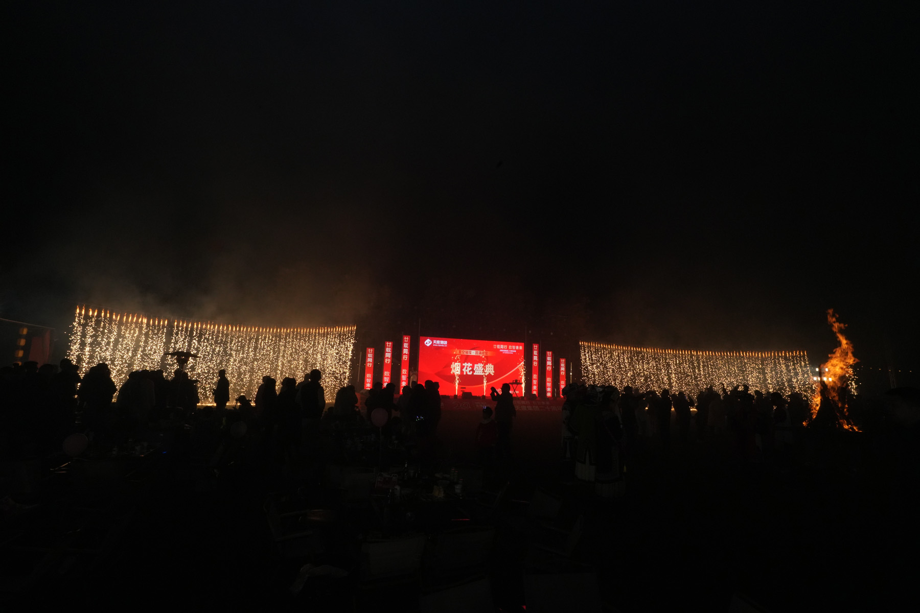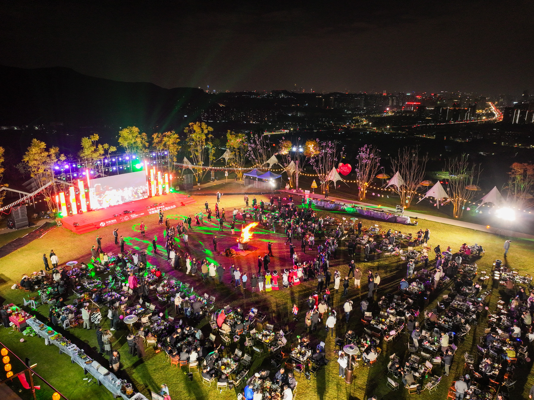 晚上七點半,伴隨主持人倒數(shù),一束束流光劃破夜空,絢麗的煙花層層綻放,如錦繡般鋪滿天幕。所有人共同仰望,在這璀璨時刻,許下對天度、對彼此最美好的祝愿。 煙花落幕后,篝火旁溫情延續(xù)。多位員工與嘉賓即興上臺表演,歌聲、朗誦、趣味互動接連不斷,為夜晚增添了無數(shù)驚喜與感動。